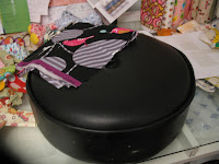 Never again .. never - ever ..I mean a new bathroom .. it must be easier to build a whole new house - in fairness to my plumber I have nearly driven him mad with my 'smallest tile' in the world selection .. that is bound to drive even the nicest.. sainest person - absolutely doo lally .. but apart form that things are good... The shop usually slows down a little this time of year and I usually end up making and making .. but this year there is a house to re..do and so my making seems to have gone alittle to the wasteside .. and all I really want to do is to sit at me sewing machine ... that seems to be permanently covered with wallpaper swatches ( I don't even have any wallpaper) .. paint samples and yes the dreaded bathroom time. I do however plan on covering this small footstool that I bought of ebay - I have being looking for one to cover for ages and thins appeared ..so I had to go for it -I have taken the legs off .. but when I get them back on - I think that it will look just fab ......